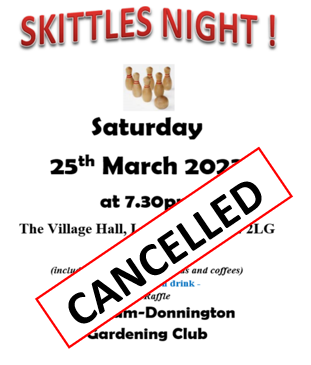 For anyone who was hoping to come along to the Gardening Club’s skittles evening in the Village Hall this Saturday evening, the event has been cancelled. Hope to reschedule this later in the year!